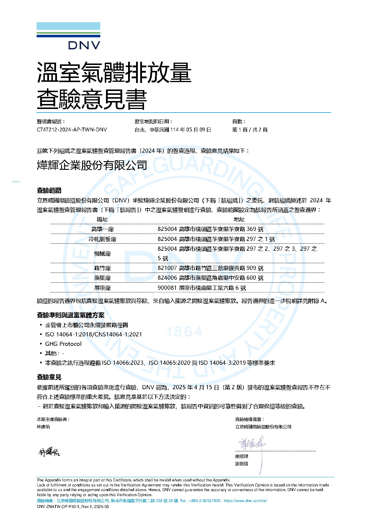 認證單位 2024年溫室氣體合理保證等級查驗 |